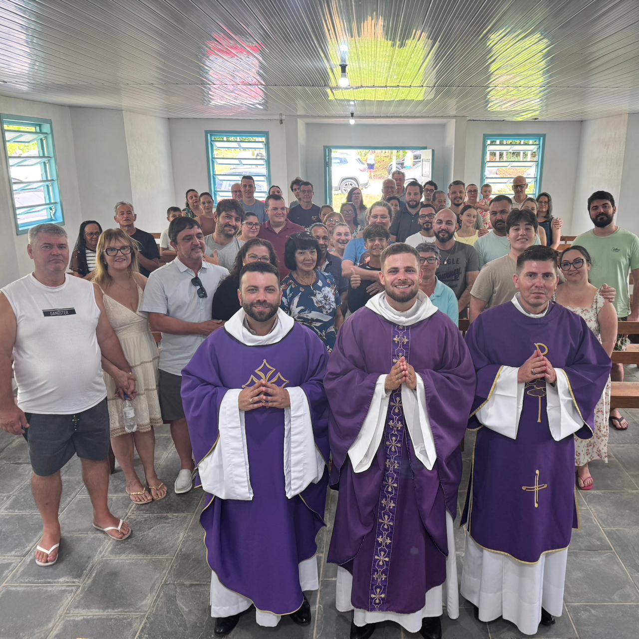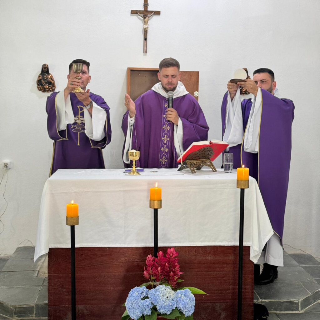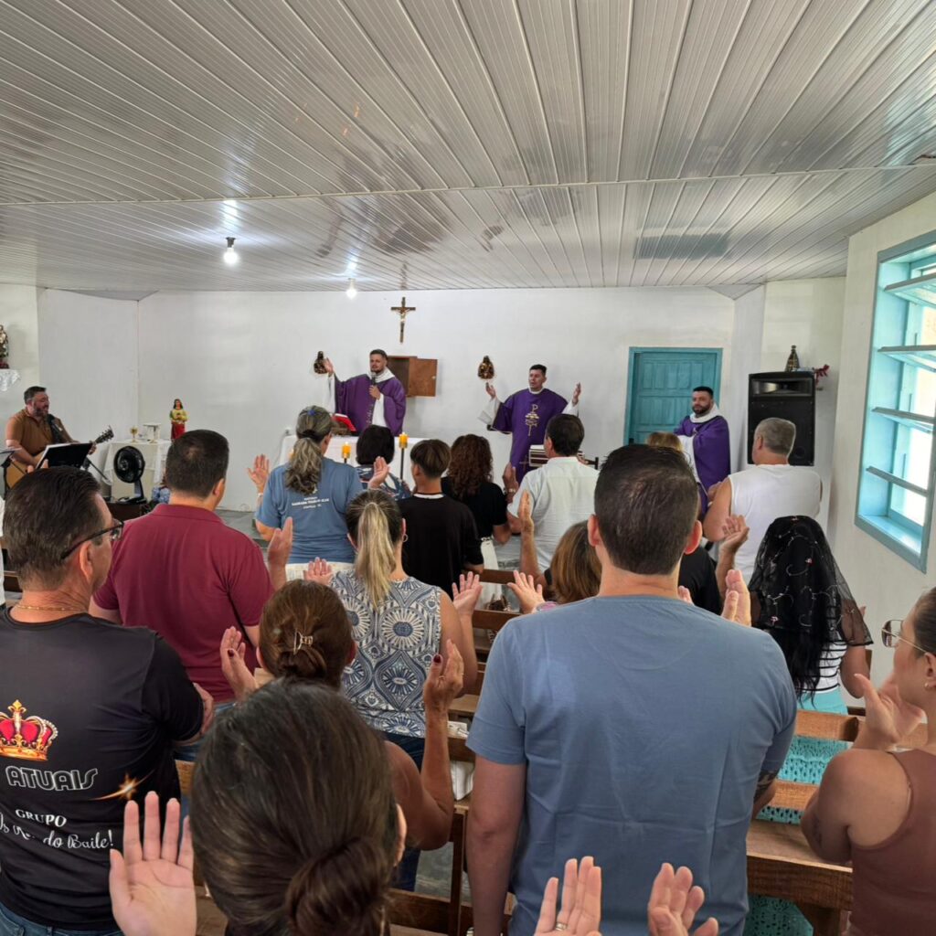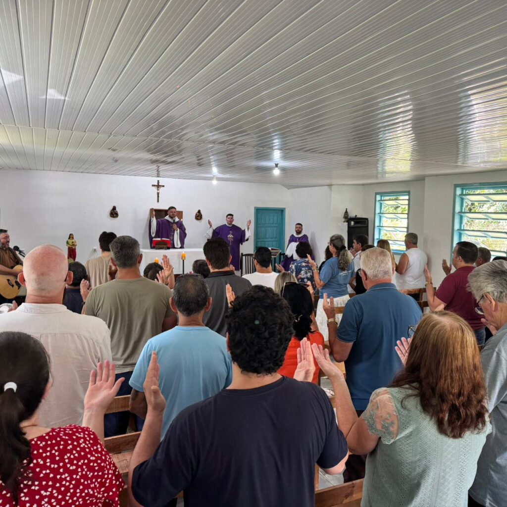 A Santa Missa foi concelebrada pelo Revmo. Pe. Fabrício Adão Bernardo, Vigário Geral da Diocese, e contou com a presença do Diácono Fernando Fuchs, Chanceler Diocesano, além de numerosos fiéis que se deslocaram até o Quiriri para participar deste momento de fé, comunhão e gratidão.