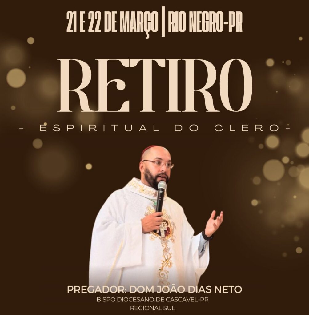 A Diocese de Joinville se prepara, com espírito de recolhimento e esperança, para o Retiro Espiritual do Clero, que será realizado neste final de semana entre os dias 21 e 22 de março, na cidade de Rio Negro-PR. Este momento constitui uma importante oportunidade de oração, silêncio e renovação interior para os clérigos, fortalecendo sua missão pastoral e seu serviço ao povo de Deus.