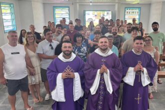 Na noite de ontem, 04 de fevereiro, a Missão Evangelizadora São José Providente, em Itapema, viveu um momento de profunda graça, comunhão e alegria com a visita pastoral do Administrador Diocesano, Revmo. Pe. Edivaldo Gomes Ferreira, que presidiu a Santa Missa na abertura da Novena de Nossa Senhora Desatadora dos Nós.