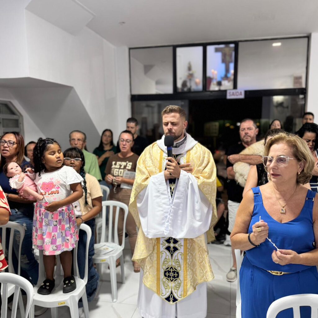 A comunidade, conduzida com zelo pastoral pelo Pe. Fabrício Adão Bernardo, responsável pela missão e também Vigário Geral da Diocese, reuniu fiéis, agentes de pastoral e famílias que lotaram o espaço celebrativo para dar início a este tempo de oração, confiança e entrega nas mãos da Mãe de Deus.